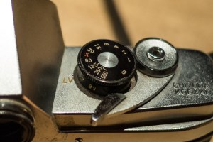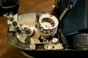 Then I adjusted the screw on the shutter lever so as to get it to a good middle point. If this screw is turned too far one way, it makes the fastest speed (1/500) behave like bulb mode — the button opens the shutter and doesn’t close it until you let go. If it’s turned too far the other way, then the slowest of the fast speeds (1/125) does the same thing. There isn’t an enormous range in between, and I don’t know how much difference this control makes, so I just picked a point somewhere in the middle.
