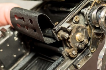 - Remove the winding lever again, replace the top and bottom covers, re-attach the top controls and eyepiece.