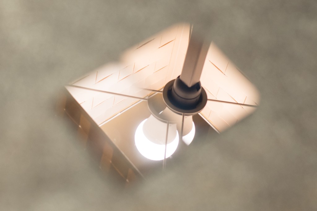 Below is the old mirror, on the left, next to the new, on the right, reflecting a lamp. This time I’ve focused on the lamp rather than the mirror surface. You can see that the old one, though cloudy, works a lot better than you might expect, but the new one is still much clearer.