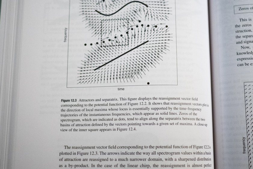 This crunchy publication (21 pages, dozens of equations and figures) took a pleasing idea — replacing the familiar grid-format time-frequency spectrogram with a field of precisely localised points calculated using both magnitude and phase of the frequency bins, rather than only magnitude as a traditional spectrogram does — and set out the mathematics of applying it to a number of different time-frequency and time-scale representations.