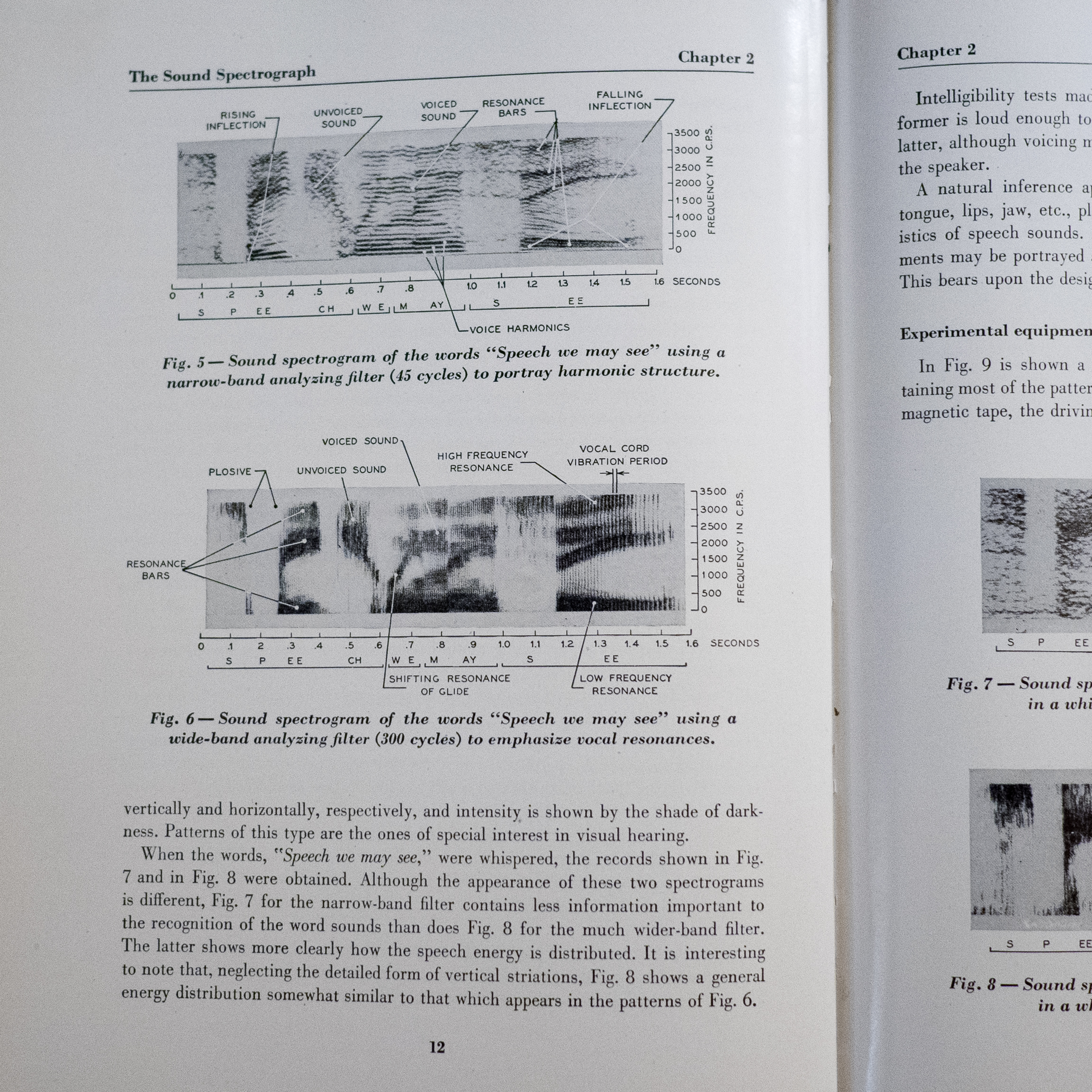 On that note, one of the first references given is to a book called “Visible Speech” by Potter, Kopp, and Green, 1947. I looked this up and was so intrigued that I tracked down an ex-library copy. It is a lavish presentation, perhaps with both training and PR elements, of a then-new idea called the “sound spectrograph”, i.e. a spectrogram. The title “Visible Speech”, incidentally, is borrowed with attribution from an earlier (1867) work about phonetic alphabets.